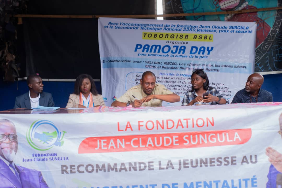 En marge du projet “Pamoja Day”, appuyé par la Fondation Jean-Claude Sungula, Tobongisa Asbl a réuni toutes les couches sociales, lors d’un échange communautaire et de sensibilisation sur la Culture de paix, dans l’espace culturel “Ndaku ya la vie est belle”, à Kinshasa-Kalamu.