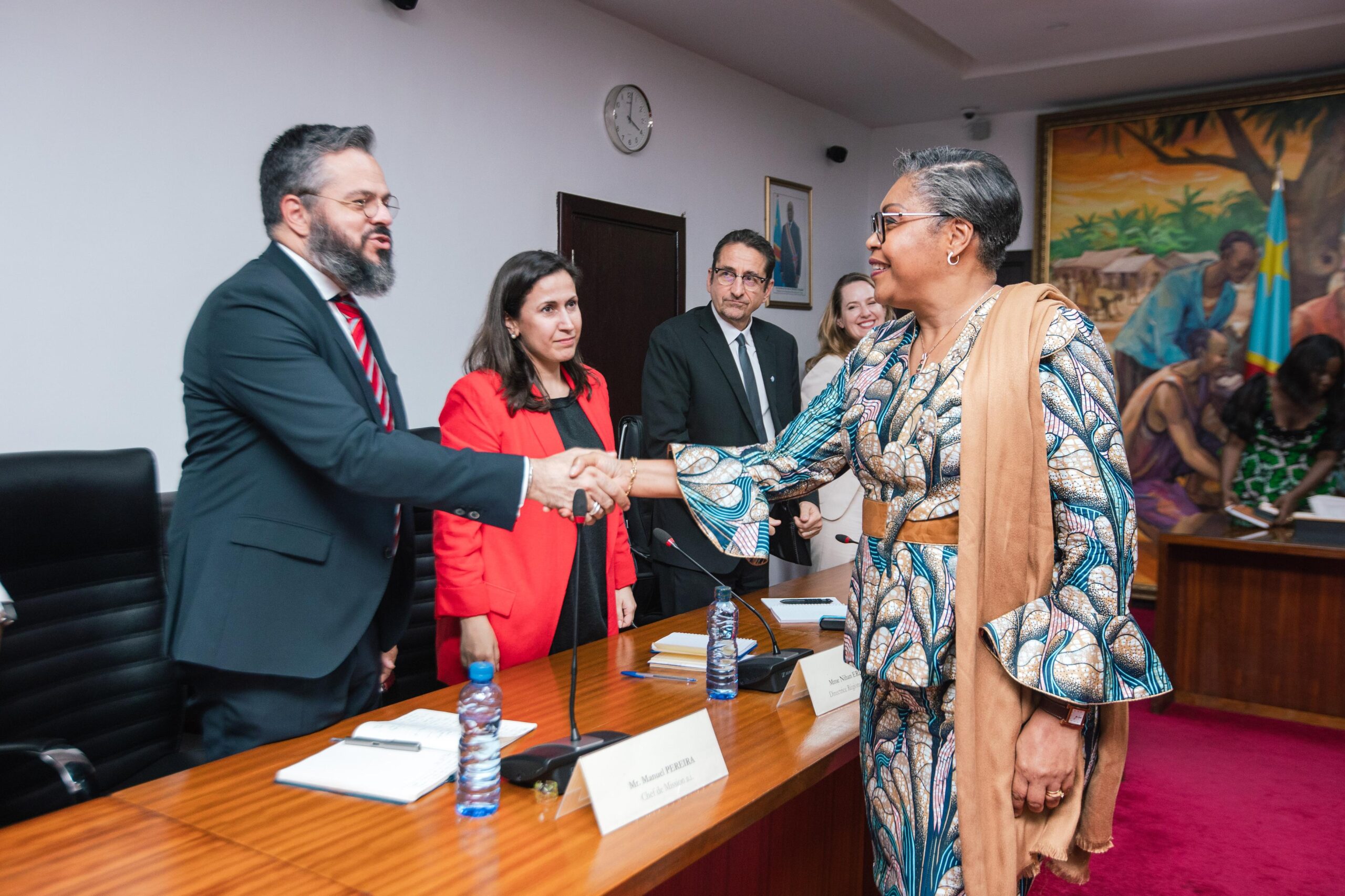 Cette rencontre était élargie du côté gouvernemental à la Ministre d’Etat, Ministre des Affaires étrangères, au Ministre de la Santé et au Vice-Ministre de l’Intérieur. La partie onusienne était représentée par Bruno Lemarquis, Coordonateur résident et Coordonateur des opérations humanitaires en RDC.