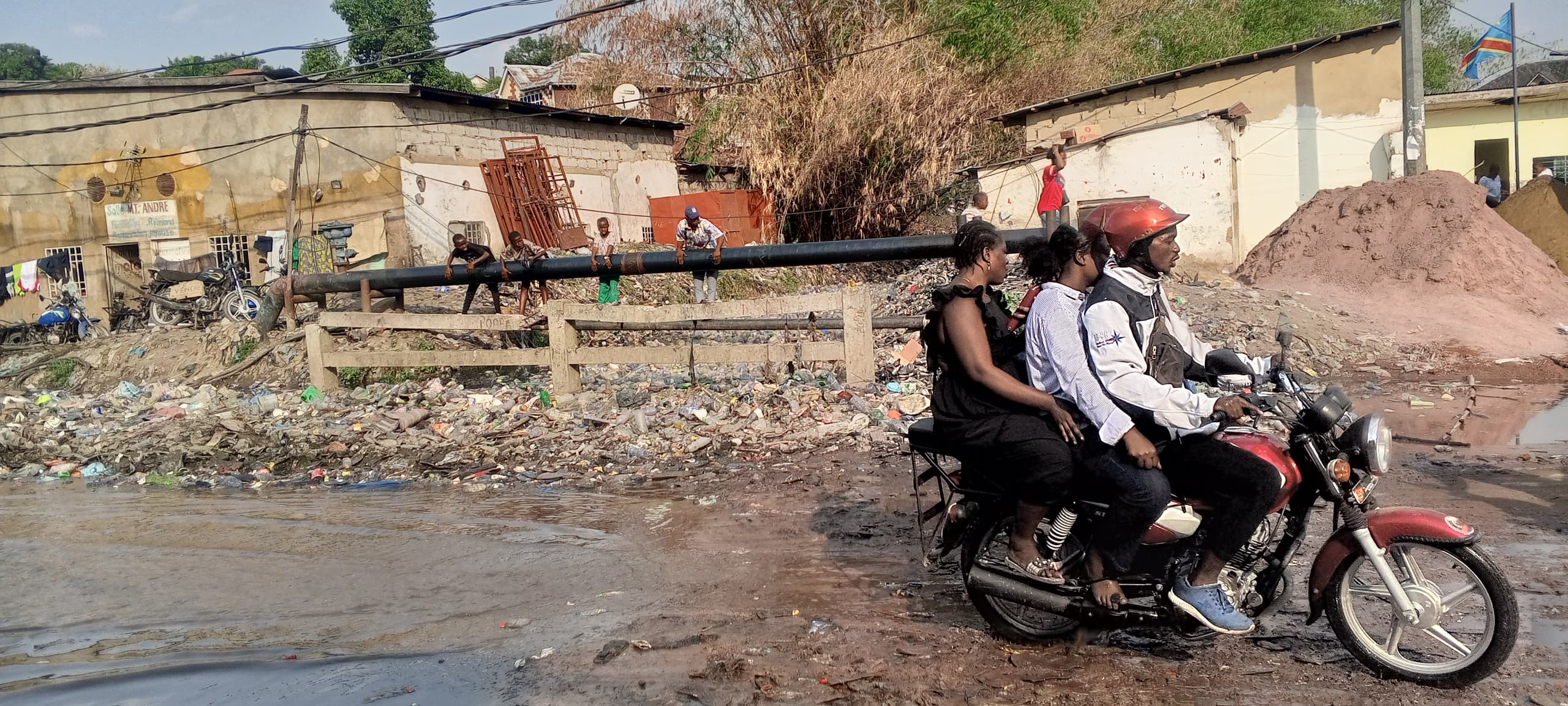 Aux alentours, nous trouvons une école privée qui voit chaque jour ses élèves risquer leur vie en traversant un grand caniveau en s’appuyant sur un gros tuyau très glissant qui peut causer des dégâts.