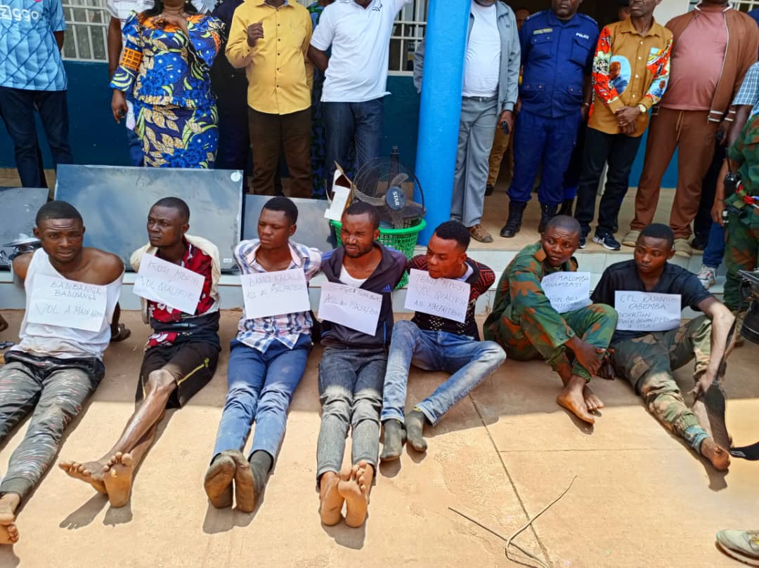 Parmi les bandits arrêtés, il y a Badibanga Badibanga, Mukendi Kabongo, Kosi Mbuyi, Danny Kalala, Mwambayi Malumba, Kasongo Kabemba. La présentation de ces bandits a eu lieu à l’hôtel de ville de Kasumbalesa, en présence du maire André Kapampa.