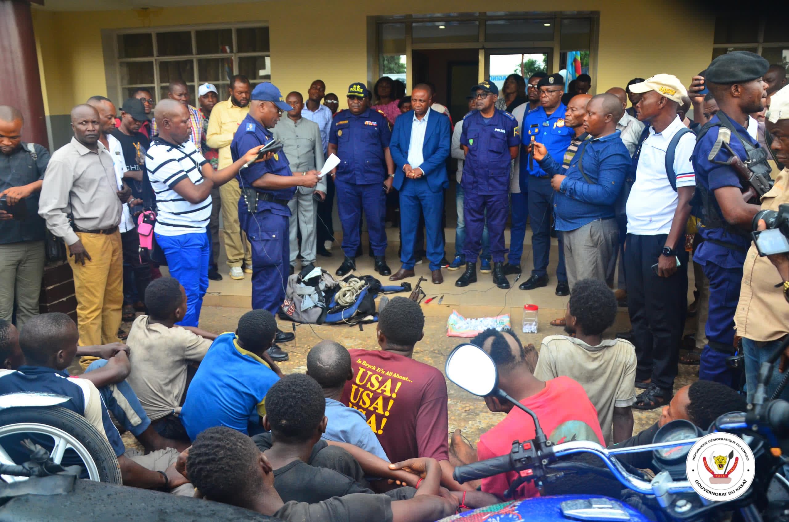 C’est devant le bâtiment administratif du gouvernorat du Kasaï que le colonel Mombili Monga, commandant urbain de la Police nationale Congolaise de Tshikapa, a présenté ce mercredi 16 octobre 2024, un groupe des bandits «Kulunas», au vice-gouverneur Djoley Bokele.
