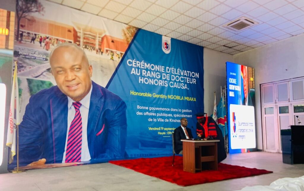 L’ancien gouverneur de la ville-province de Kinshasa et président de l’Alliance des Congolais Progressistes, Gentiny Ngobila Mbaka, a reçu ce vendredi 19 septembre 2025, le titre honorifique de Docteur Honoris Causa décerné par l’Université technologique Bel Campus.