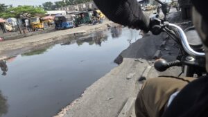 Caniveaux bouchés, chaussée criblée de nids-de-poule, montagnes d’ordures et eaux stagnantes aux odeurs répugnantes composent le décor. La circulation devient un véritable calvaire, tant pour les automobilistes que pour les piétons, contraints de slalomer entre flaques insalubres et tas d’immondices.