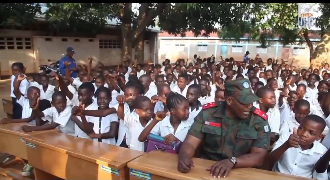 » C’est devenu oui comme une obsession. Nous le faisons avec la médiation. Vous savez lorsque vous arrivez dans une école où universités vous voyez les conditions d’études des enfants vous êtes tristes. Il y avait de ces écoles qui utilisait toujours les bancs laissés par les Belges avant le passage du Service national… », a dit le général-major Jean-Pierre Kasongo Kabwik