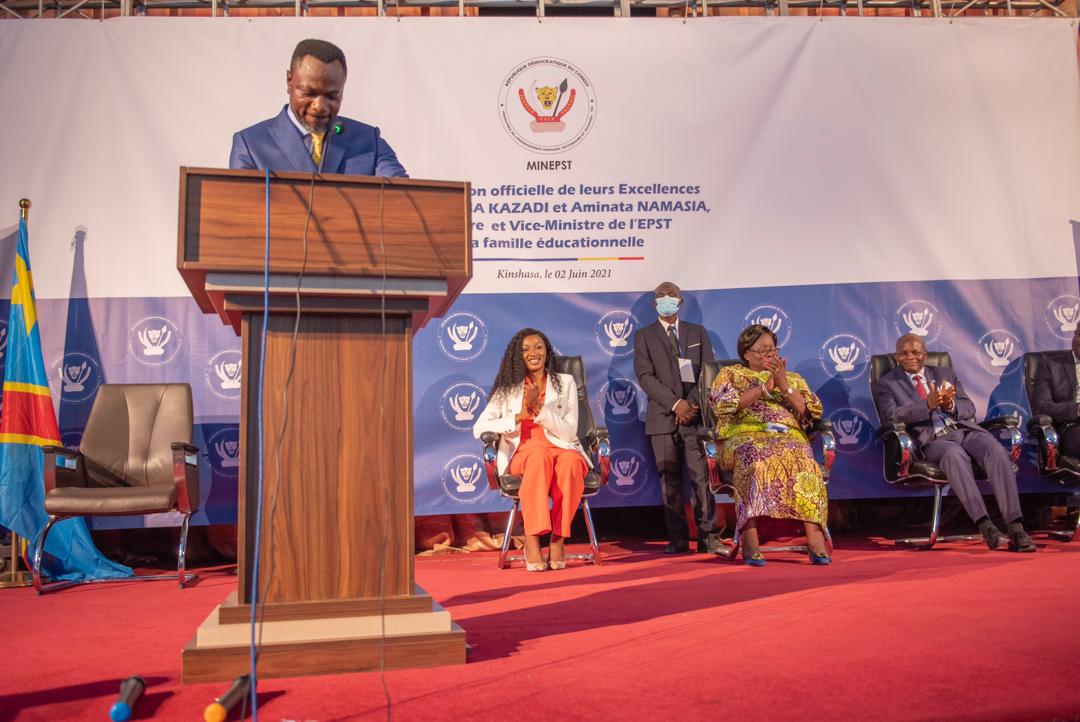 Le ministre de l’Enseignement primaire, secondaire et technique (ESPT), Tony Mwaba, et la vice–ministre, Aminata Namasia, ont été présentés officiellement ce mercredi 2 juin 2021 à toute la famille éducationnelle. Cadre de l’événement : l’amphithéâtre du collège Boboto dans la commune de la Gombe.