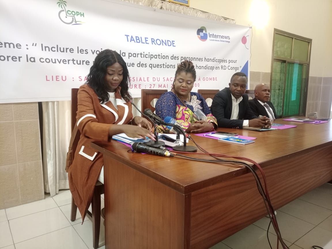 Lors de la conférence organisée par Internews en synergie avec la coalition des Organisations des personnes handicapées, le jeudi 28 mai à la salle Sacré-cœur à Gombe, la présidente de la commission Droits de l’homme de l’Assemblée nationale, Christelle Vuanga, élue de la Funa, a évoqué la proposition de loi visant à promouvoir et à protéger les droits des personnes vivant avec handicap.