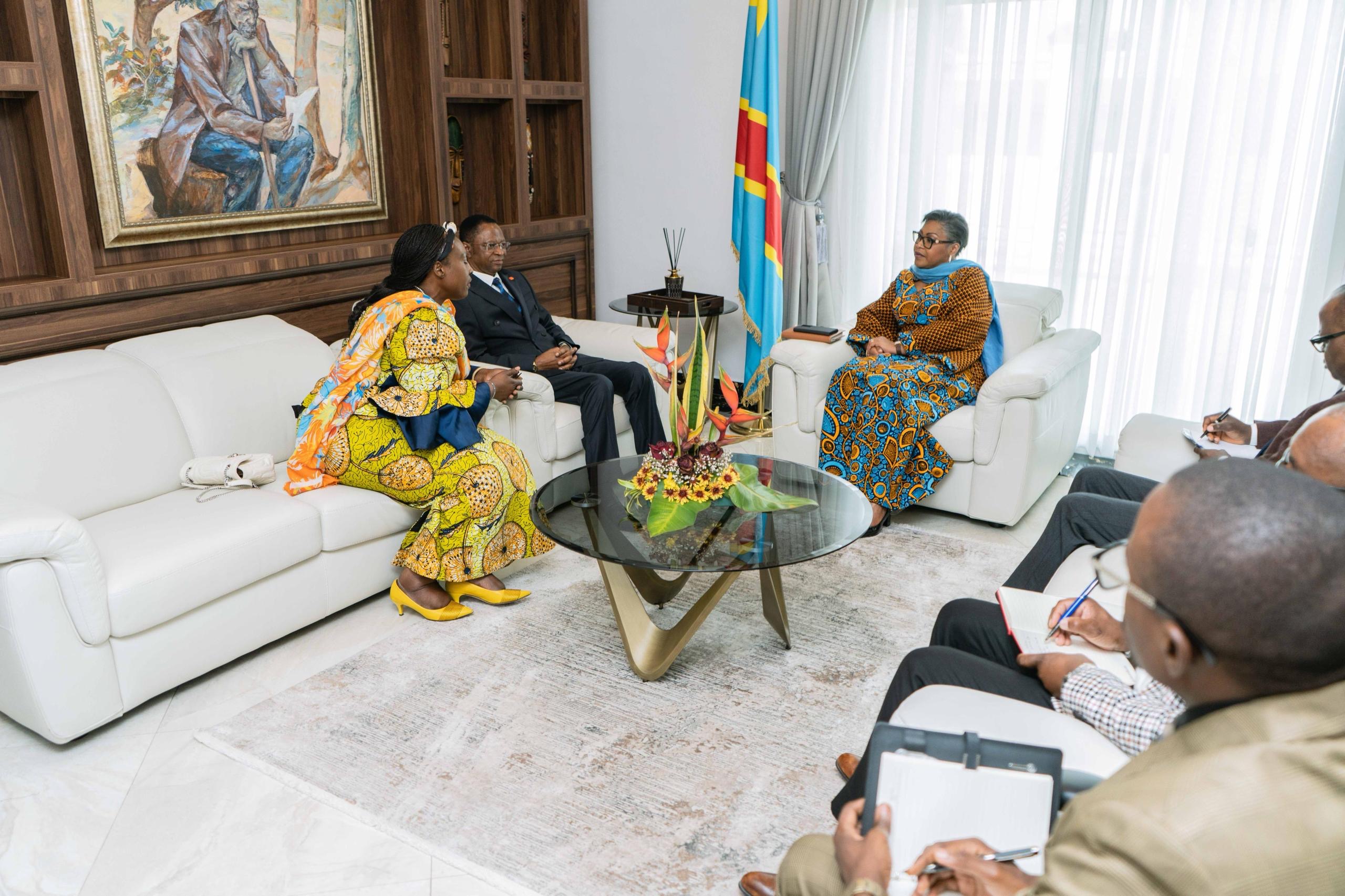 La Première Ministre a échangé, ce lundi 23 septembre à la Primature, avec la Ministre des Droits humains, Chantal Shambu et le Premier Président de la Cour de cassation, Elie-Léon Ndomba Kabeya, sur les propositions de solutions afin d’améliorer les conditions des milieux carcéraux des enfants à Kinshasa.