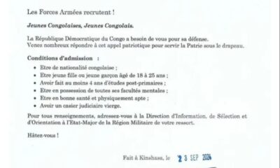 Dans un communiqué parvenu à la rédaction de CONGOPROFOND.NET, en date du 23 septembre 2024, les Forces Armées de République Démocratique du Congo lancent un appel...