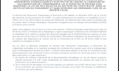 Kinshasa, le 13mai 2025 – Le Réseau Mwangaza a exprimé sa profonde désapprobation suite à l’adoption, en décembre 2024, de l’ordonnance-loi n°25/025 modifiant la loi n°14/011...